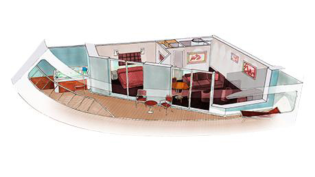 Luxurious accommodation and exclusive services are only the beginning. The MSC Yacht Club also boasts a range of superb private areas, from the elegant Top Sail Lounge with its panoramic views to the stylish restaurant and the One Pool Deck∘ complete with private swimming pool, whirlpool baths, sun deck and bar.