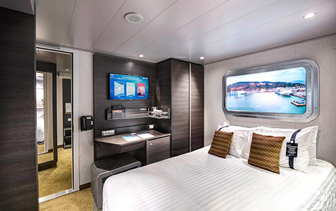 This high-tech, multi-purpose space houses a radio broadcast suite and a TV studio broadcasting live games, quizzes, talent contests and other fun content across the ship. It also serves as an atmospheric comedy club, karaoke bar and live music venue.